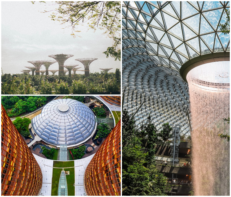 - Singapur – 101 hektarów ogrodów, zaprojektowanych przez specjalistów z 24 krajów. Teren zlokalizowany nad Zatoką Marina w celu optymalnego wykorzystania naturalnych walorów środowiskowych. Specjalne konstrukcje, nazywane superdrzewami (ang. Supertrees), służą do zbierania wody deszczowej, energii słonecznej oraz kompostowania materii organicznej.