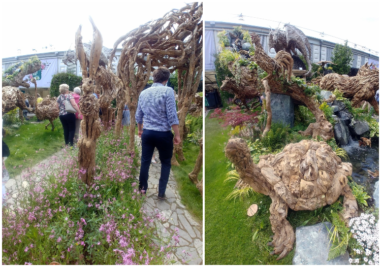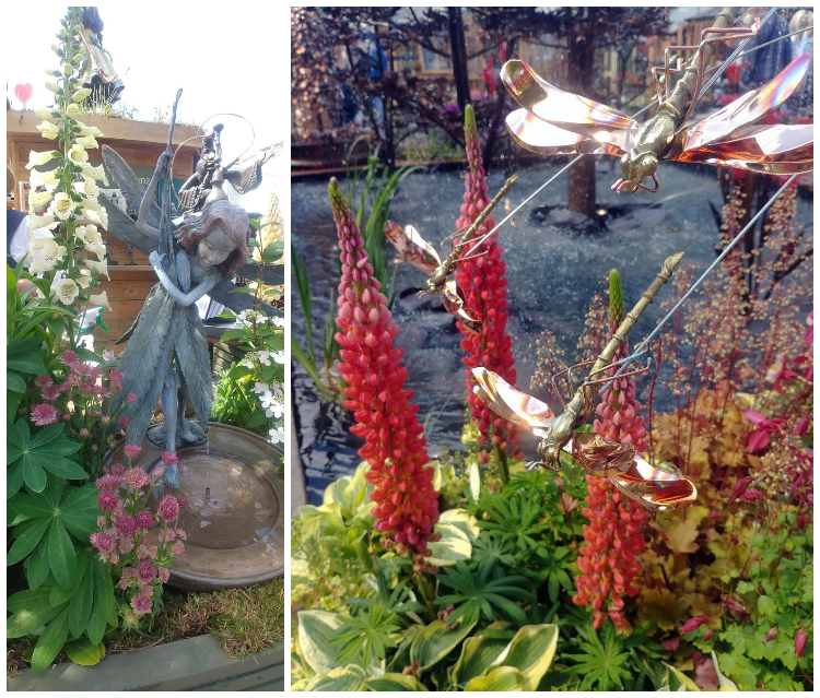 Na Chelsea Flower Show ogrodowe gnomy mają wstęp wzbroniony. Ale ogrodowe wróżki są najwyraźniej mile widziane. Istnieje nawet trend ogrodów miniaturowych, zwanych 'Fairy’s garden’. Skrzydlate ważki, wkomponowane w karminową rabatę łubinów nasuwają skojarzenia z siłami powietrznymi (ogrodu oczywiście).