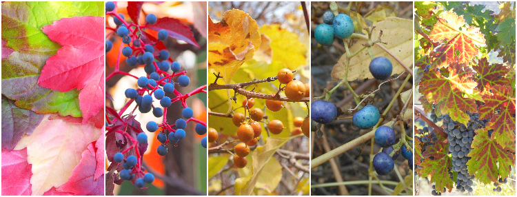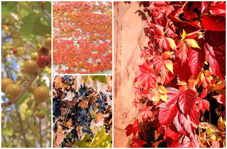 Pomimo, że miejskie winorośle nie doczekują się winobrania, ich widok, kiedy oplatają balkony wprawia w jesienny nastrój. Są niezastąpione w roli dekoracji restauracyjnych frontów, posiadają silne konotacje z południem Europy. Nawet jeśli polskie temperatury sugerują zgoła inną lokalizację, podświadomość z chęcią daje się lekko oszukać. Duże, delikatne ulistnienie winorośli przebarwia się mozaikowato, zaczynając od centralnego unerwienia liścia. Ciekawą odmianą, wybarwiającą się w tonacjach oliwkowych jest winorośl lisia (V. labrusca). Ze względu na swoją wysoką mrozoodporność funkcjonuje w uprawach nawet na terenie Kanady. Poza znanymi ze swych owoców winoroślami właściwymi (V. vinifera), warto przy okazji jesiennych wybarwień wymienić także takie gatunki jak: