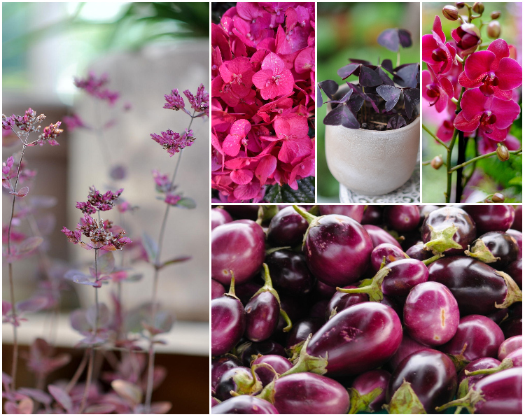 Kolor czerwcowego, burzowego nieba o zachodzie słońca. Barwy złożone, zmienne, zależne od światła i nastroju. Intensywne, energetyczne, nasycone. Weźmy za przykład szczawik /Oxalis triangularis/. Jego głęboko fioletowe liście, gdy prześwieca przez nie światło słońca zdradzają całe bogactwo antocjanów, jakimi wysycone są ich tkanki. Ta propozycja kolorystyczna mobilizuje, by patrzeć na coś pozornie oczywistego pod różnymi kątami, mrużąc nieraz oczy.